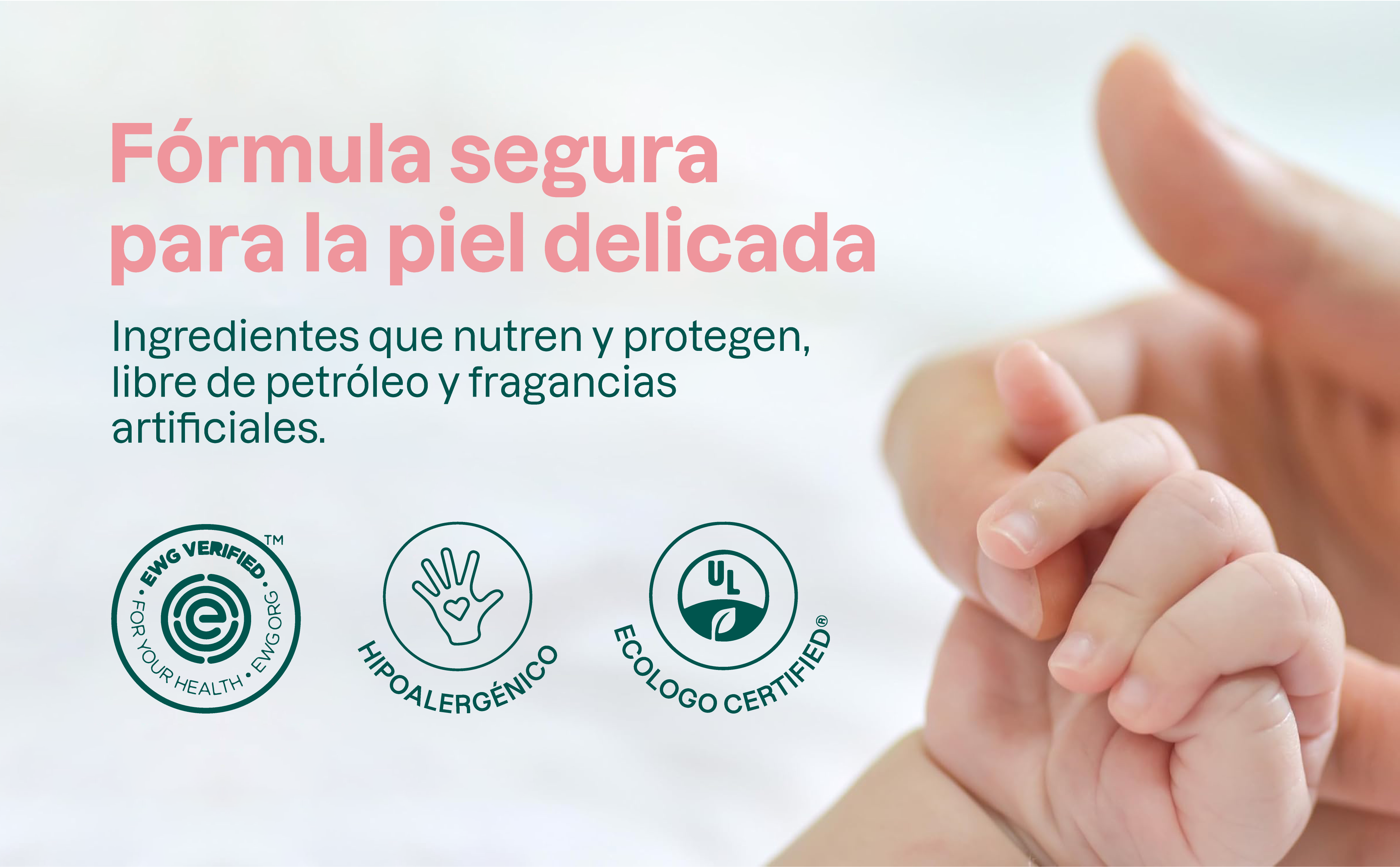 - Testeado dermatológicamente, no irritante e hipoalergénico para la piel sensible del bebé.
