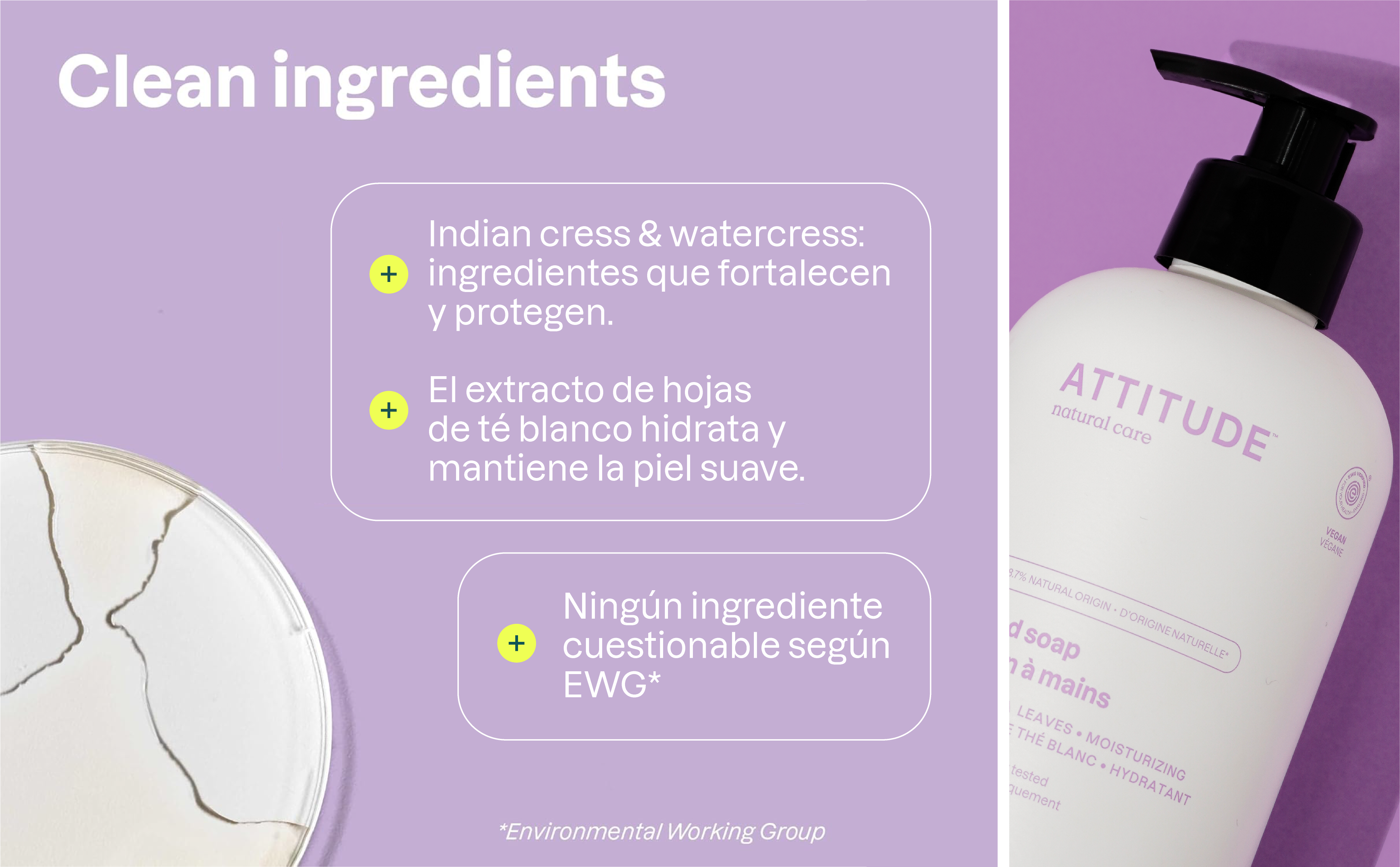 Aprovecha el poder del extracto de hoja de té blanco, rico en antioxidantes con el Jabón para manos de ATTITUDE, conocido por calmar la piel.
