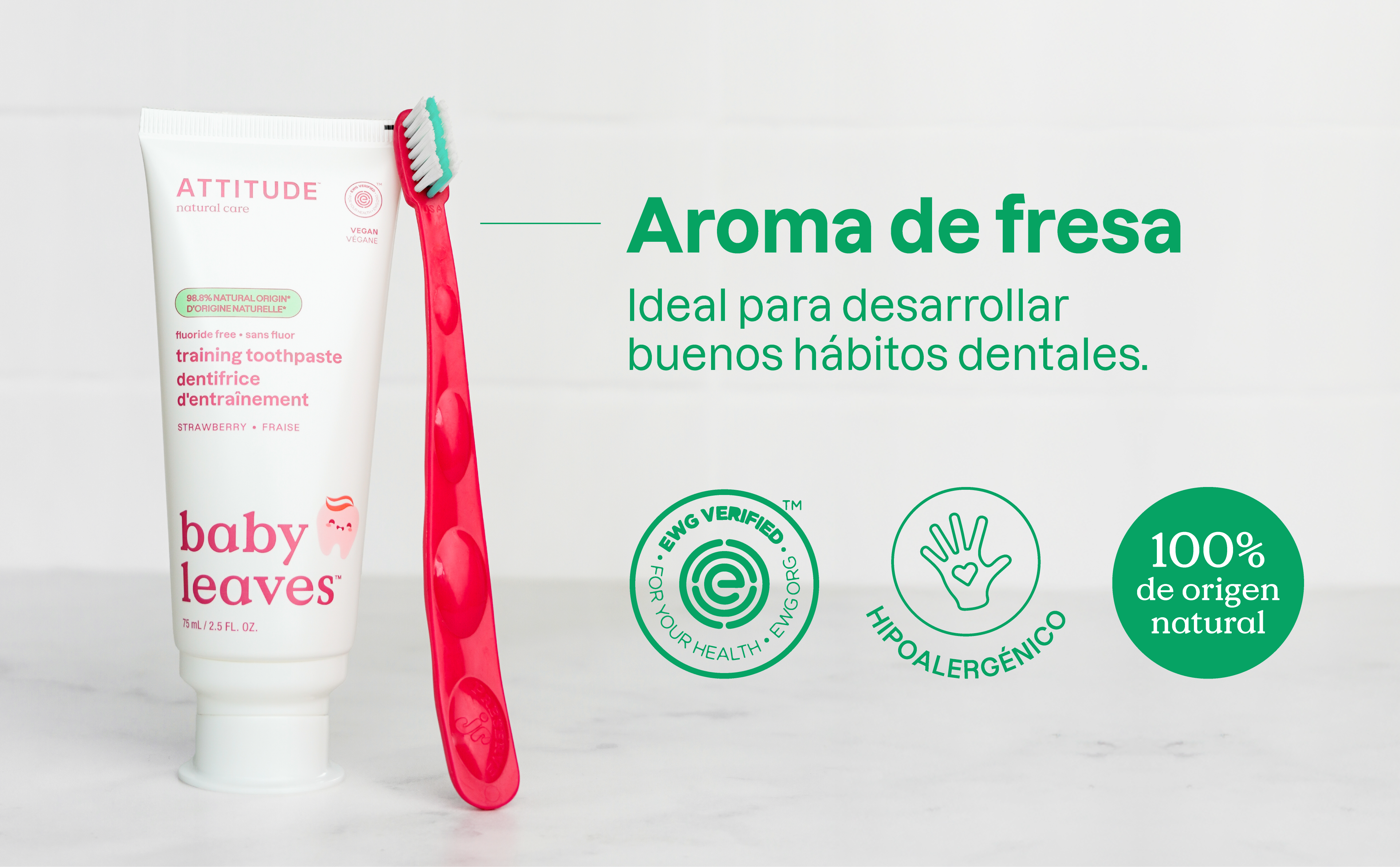 La pasta de dientes Attitude Baby Leaves natural y sin flúor es perfecta para introducir a los pequeños de la casa a la practica de hábitos dentales saludables de por vida.