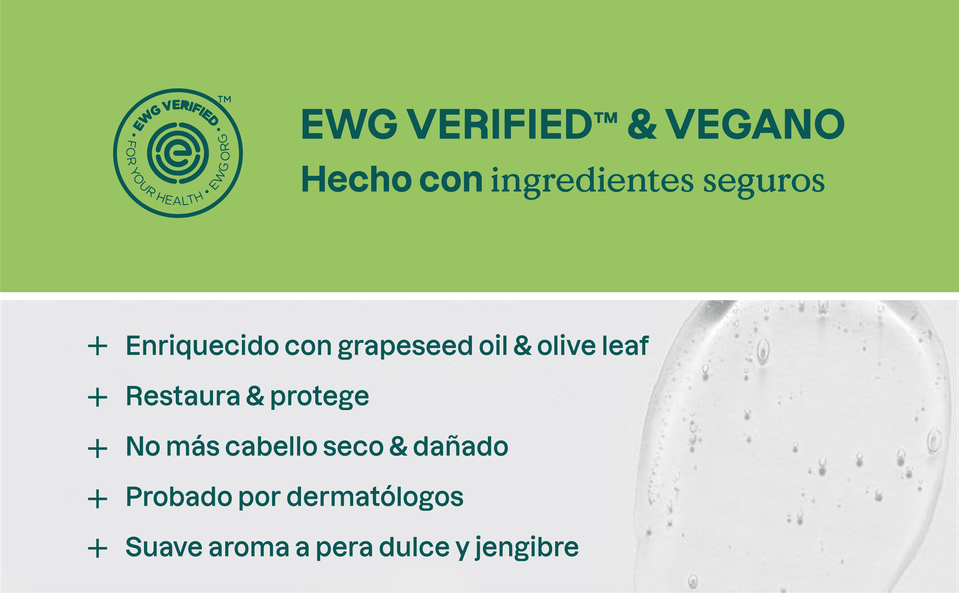 - Cargados con antioxidantes, aceite de semilla de uva y extracto de hoja de olivo ayudan a nutrir y fortalecer el cabello seco y dañado.